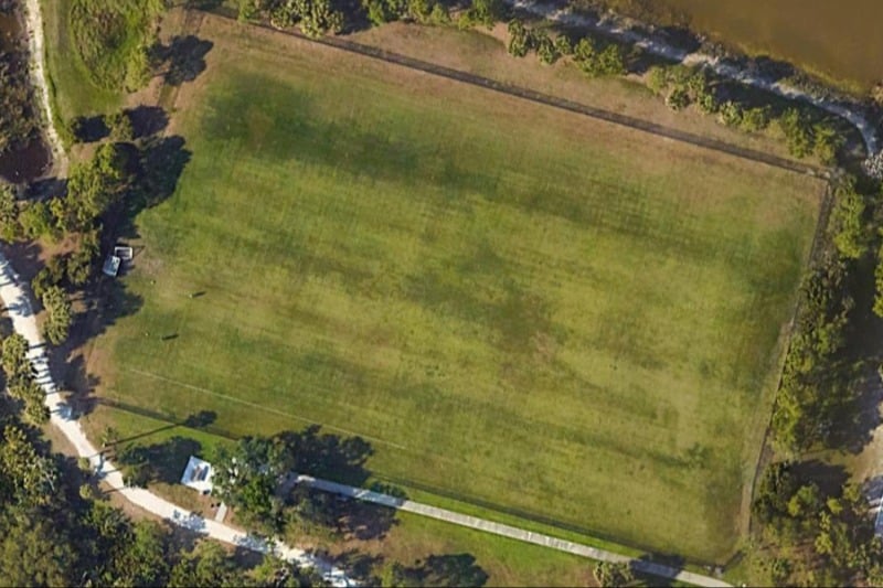 Entering the park from Kay Road, you'll find the multi-purpose field on the right, just beyond the playground and volleyball courts.