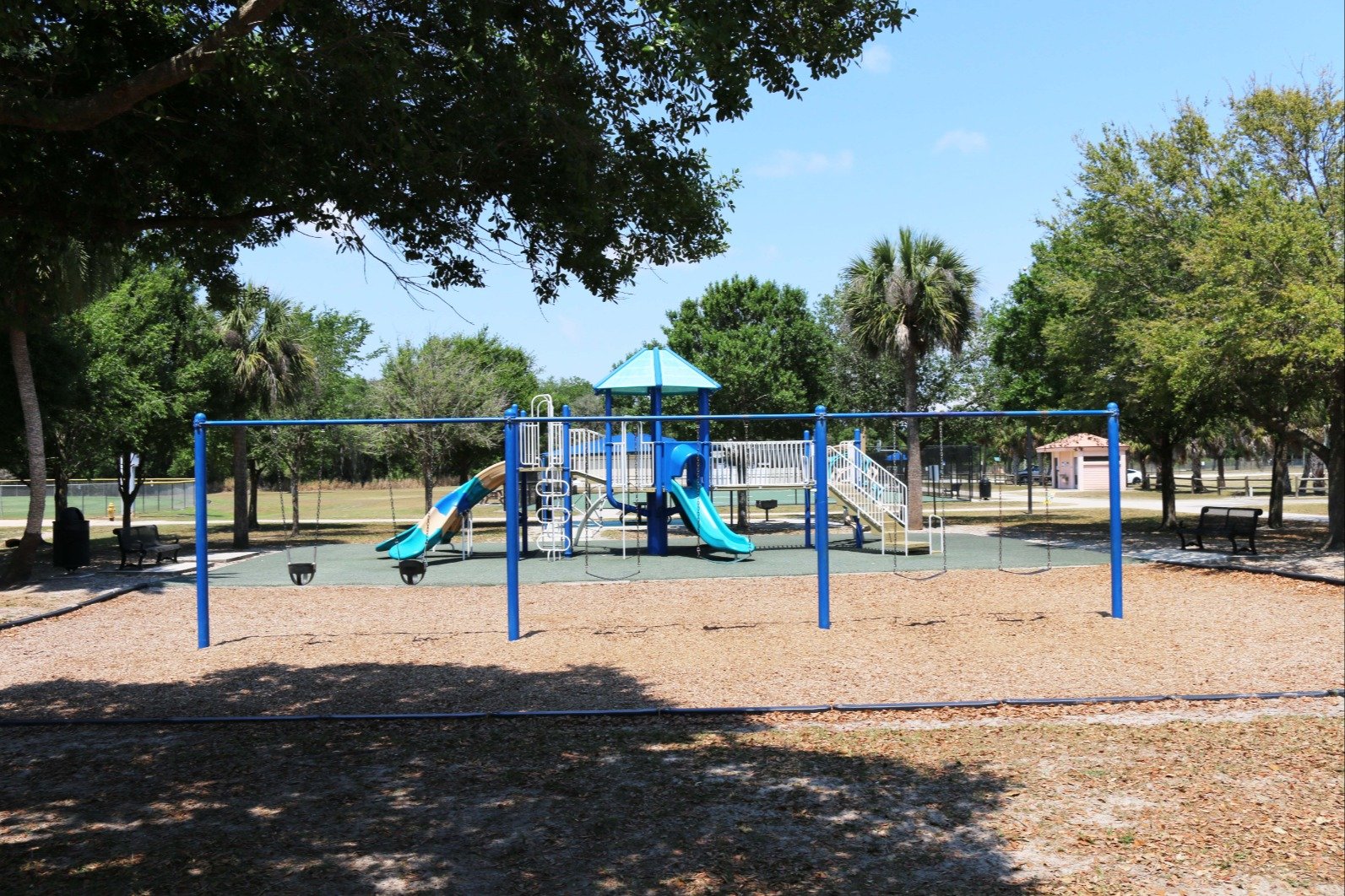 The pavilion is located in front of the parking lot before you reach the little league fields.Location: Take I-75 to exit 224 and head East on 301, go to Erie Road and turn left. Follow Erie Road until it curves to the right and then take left onto 69th Street East. Follow 69th Street for approximately 1.5 miles, entrance to the park is the same as the entrance to the golf course and is on the right.