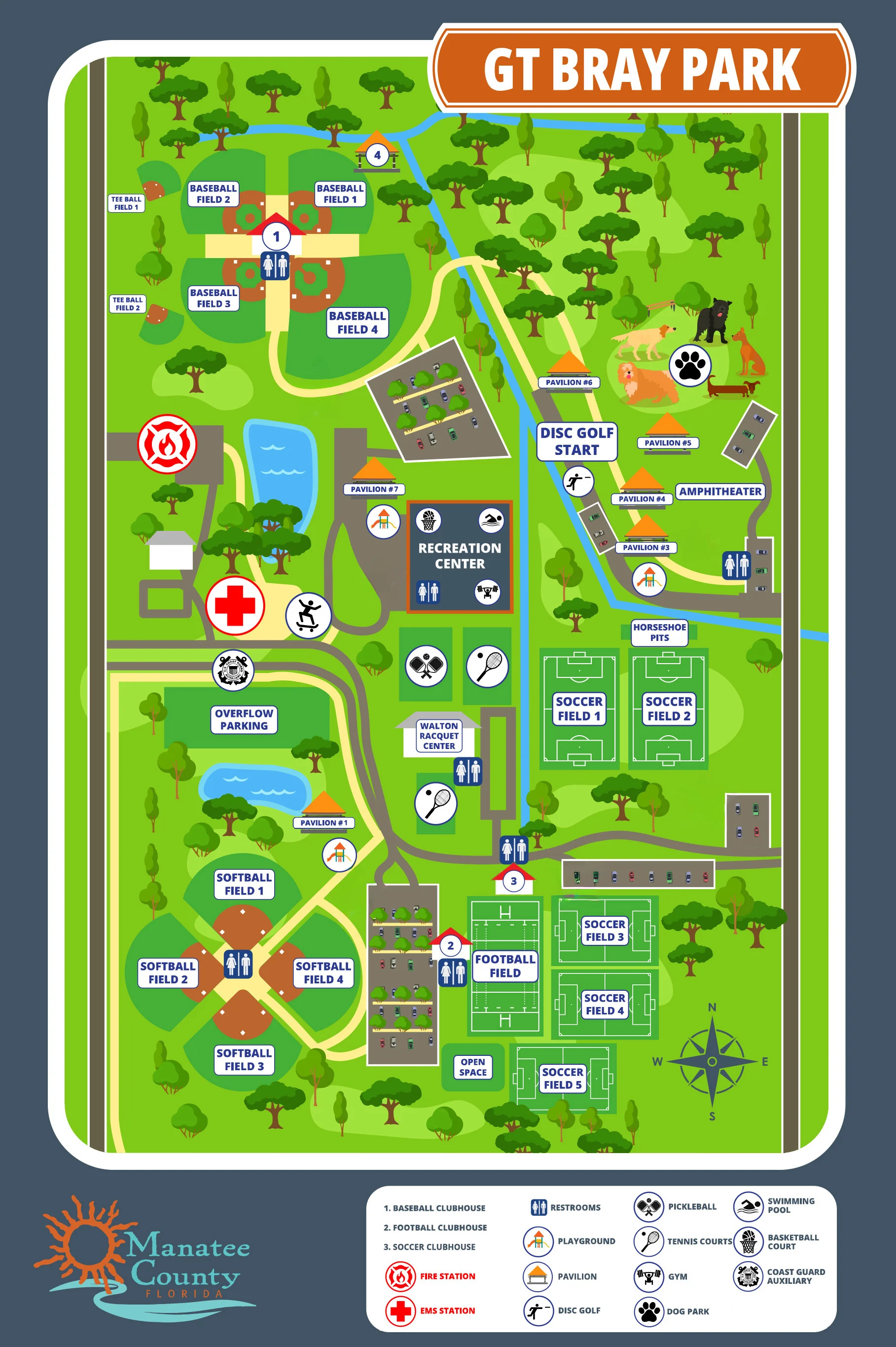 At the center of it all is the Recreation Center, your gateway to even more activities and open to all with a daily fee or membership. Take a stroll along the scenic trails and explore the park’s many amenities to find what excites you most. From sports to serenity, G.T. Bray Park has it all. Come see for yourself!