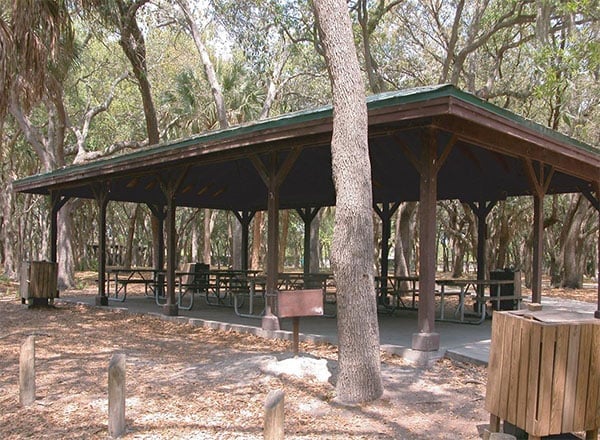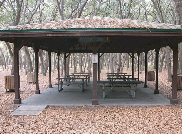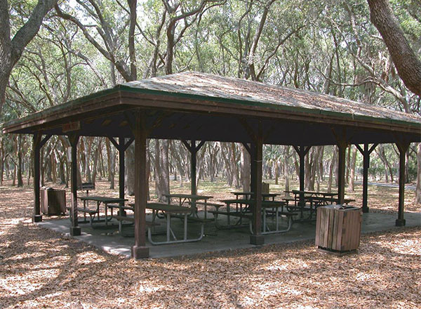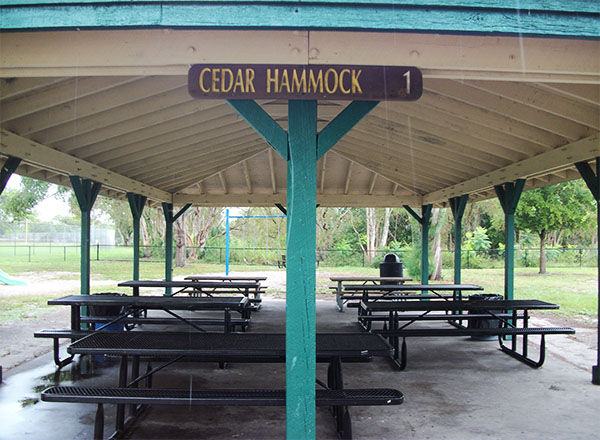Take the 51st street entrance into the wooded oak hammock (near the dog park). The pavilion is positioned under the trees, adjacent to the fenced in playground. Park gates will not be unlocked for closer access to the pavilion.