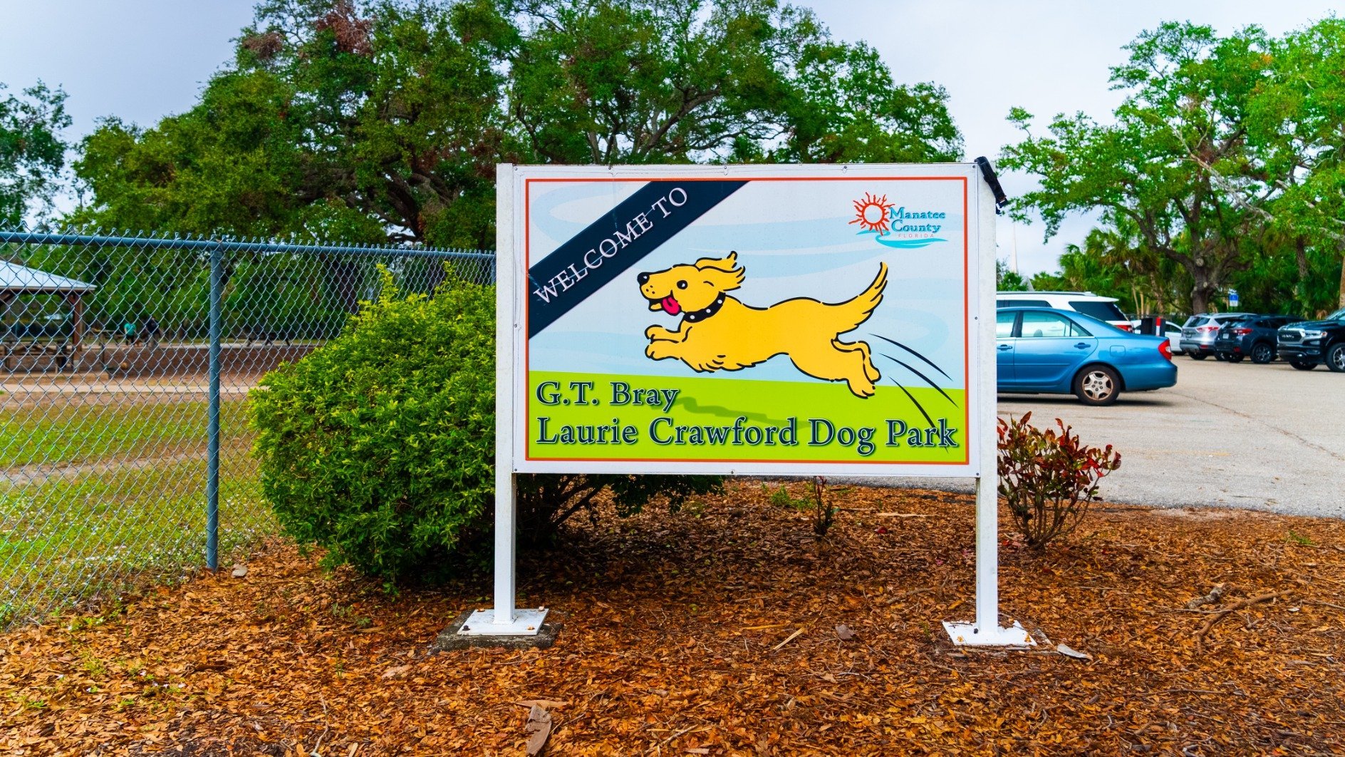 The Laurie Crawford Dog Park, formerly known as the "Happy Tails Canine Park" offers separate play space for large and small dogs. The park is a fenced-in, started as3-acre off leash dog park located in the northeast corner of G.T. Bray Park and now covers 4.25 acres, expanding into tree-shaded areas.