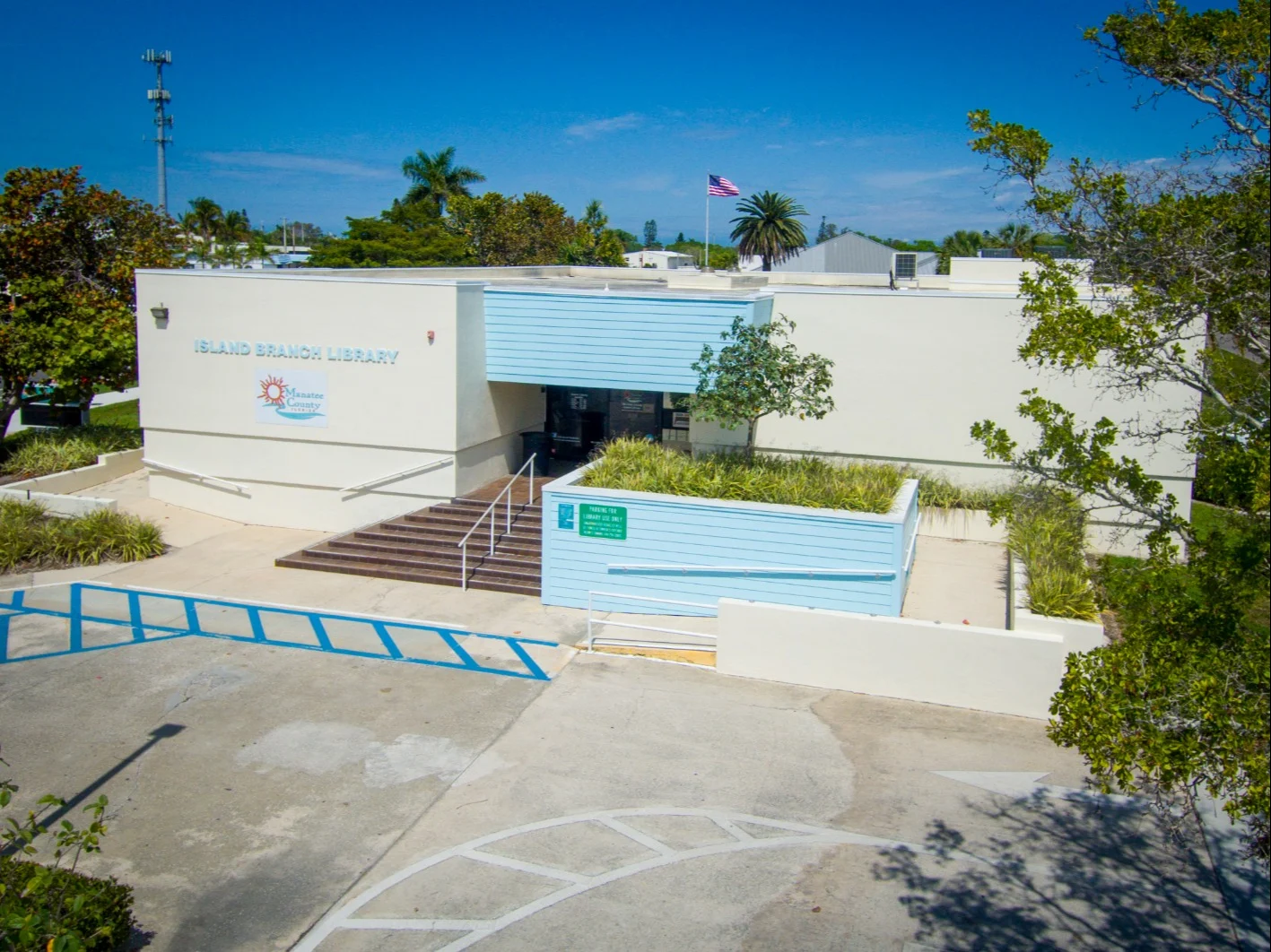 The Island Branch Library serves Anna Maria Island and surrounding areas, offering programs and collections for all ages, including early literacy backpacks, nature and travel workshops, and seasonal lectures. Located near the beach, the library partners with local organizations like the Anna Maria Island Chamber of Commerce and hosts community outreach events, such as the Beach Market and Music on the Porch at the Maritime Museum. Known for its indoor and outdoor murals, the library underwent a major renovation in 2012 and celebrated its 40th anniversary in 2022.