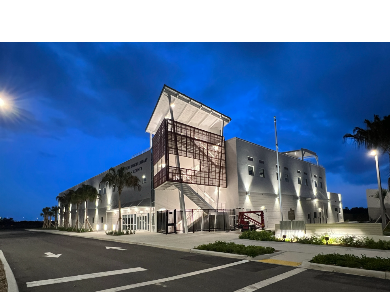 As Manatee County's newest public library, Lakewood Ranch Library opened on January 12, 2024. Currently, the Lakewood Ranch Library occupies over 25,000 sq. ft. on the first floor of the building that opens onto a spacious backyard space, plus another 1,200 sq. ft. on the rooftop for event space. The library offers programs in a wide range of interests and across all age-groups throughout the year and works to bring the library beyond our walls through outreach efforts to our surrounding schools, community events, Myakka and the rest of eastern county area.