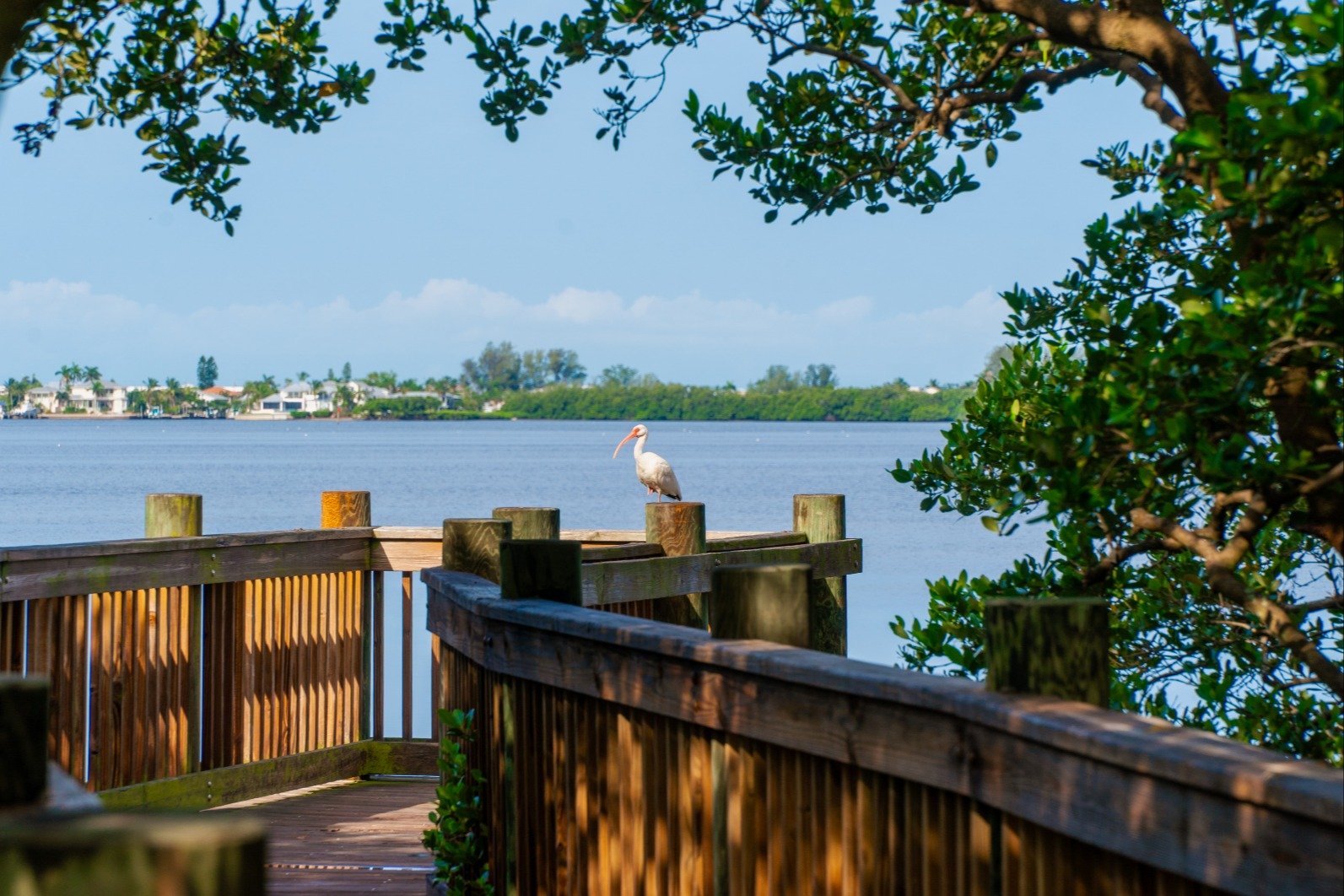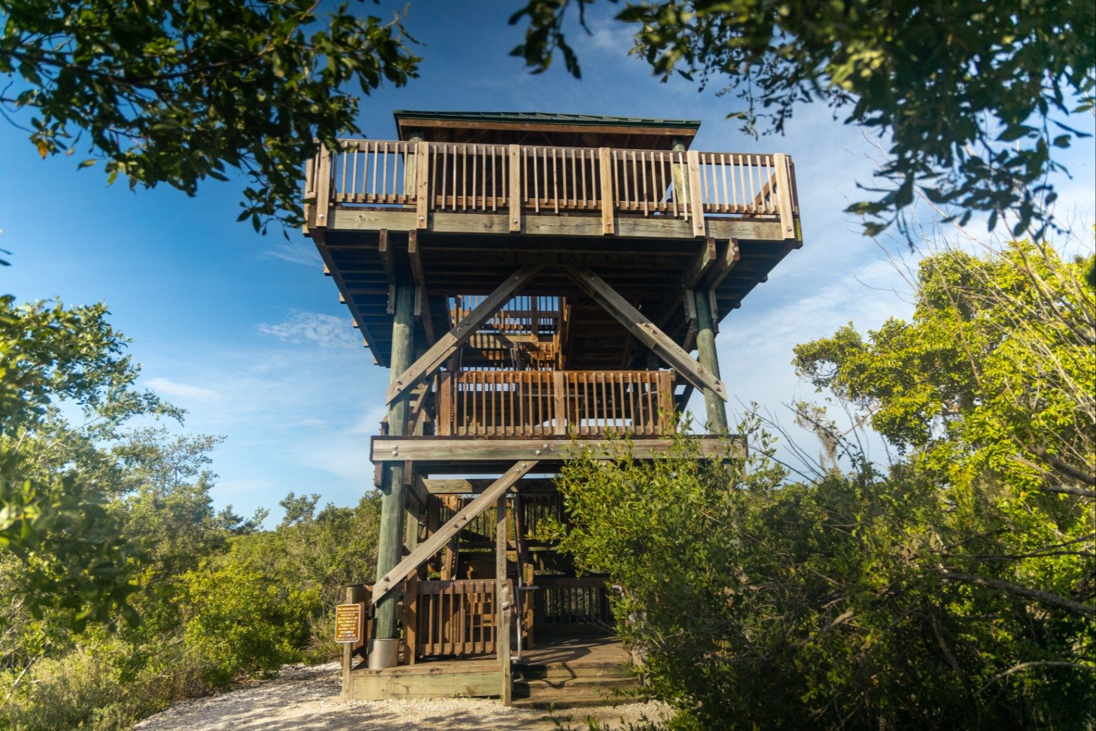 Neal Preserve’s 120 acres include both coastal habitats, such as mangrove forests and salt terns, as well as pockets of oak hammock uplands. The site features passive outdoor recreation opportunities including a 20 foot tall observation tower, 0.3 mile shell trail loop, and boardwalks that wind through the coastal environment. Located on the south side of Manatee Avenue, overflow parking is available on the north side of the Anna Maria Island Bridge. There is one portable restroom in the parking area.