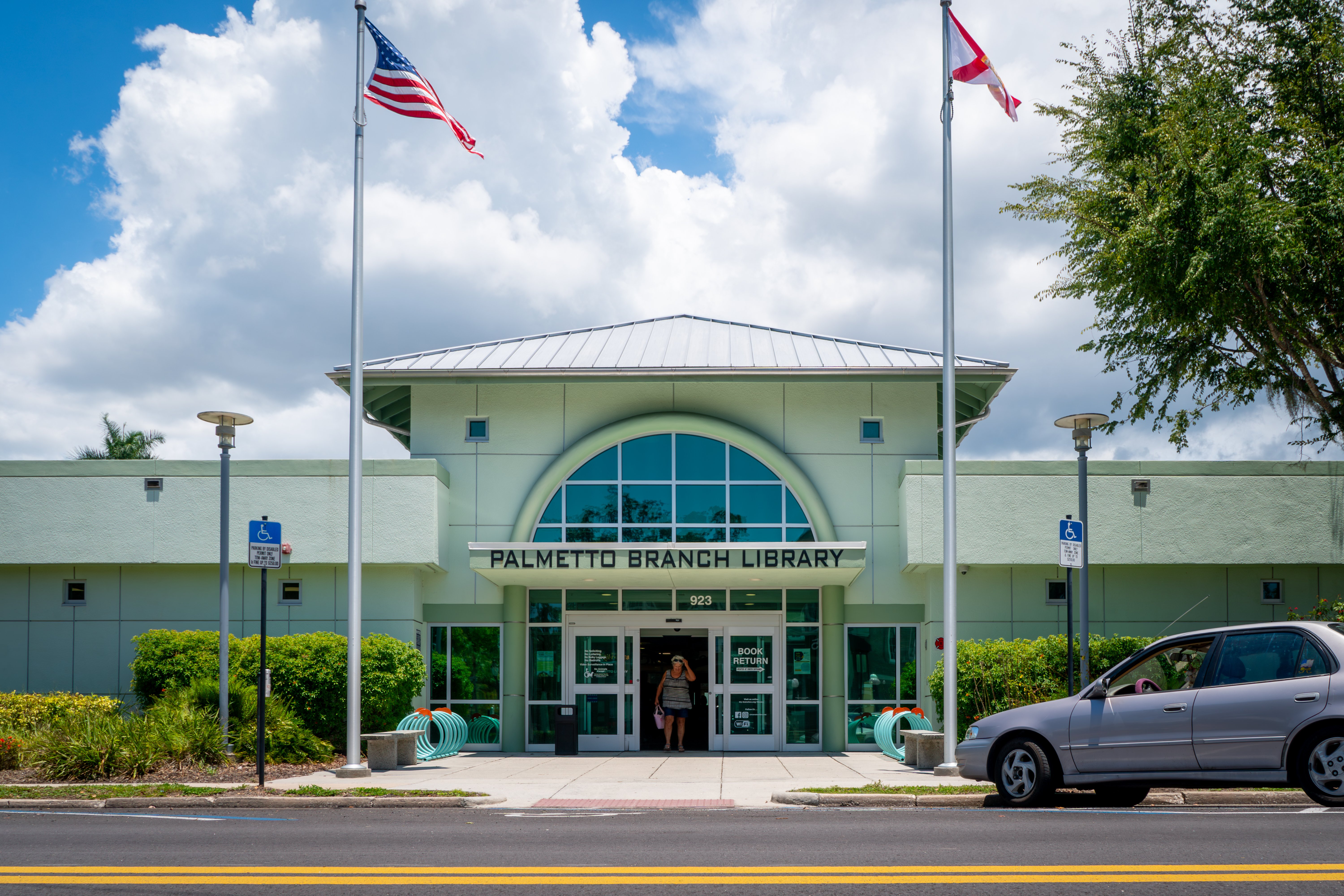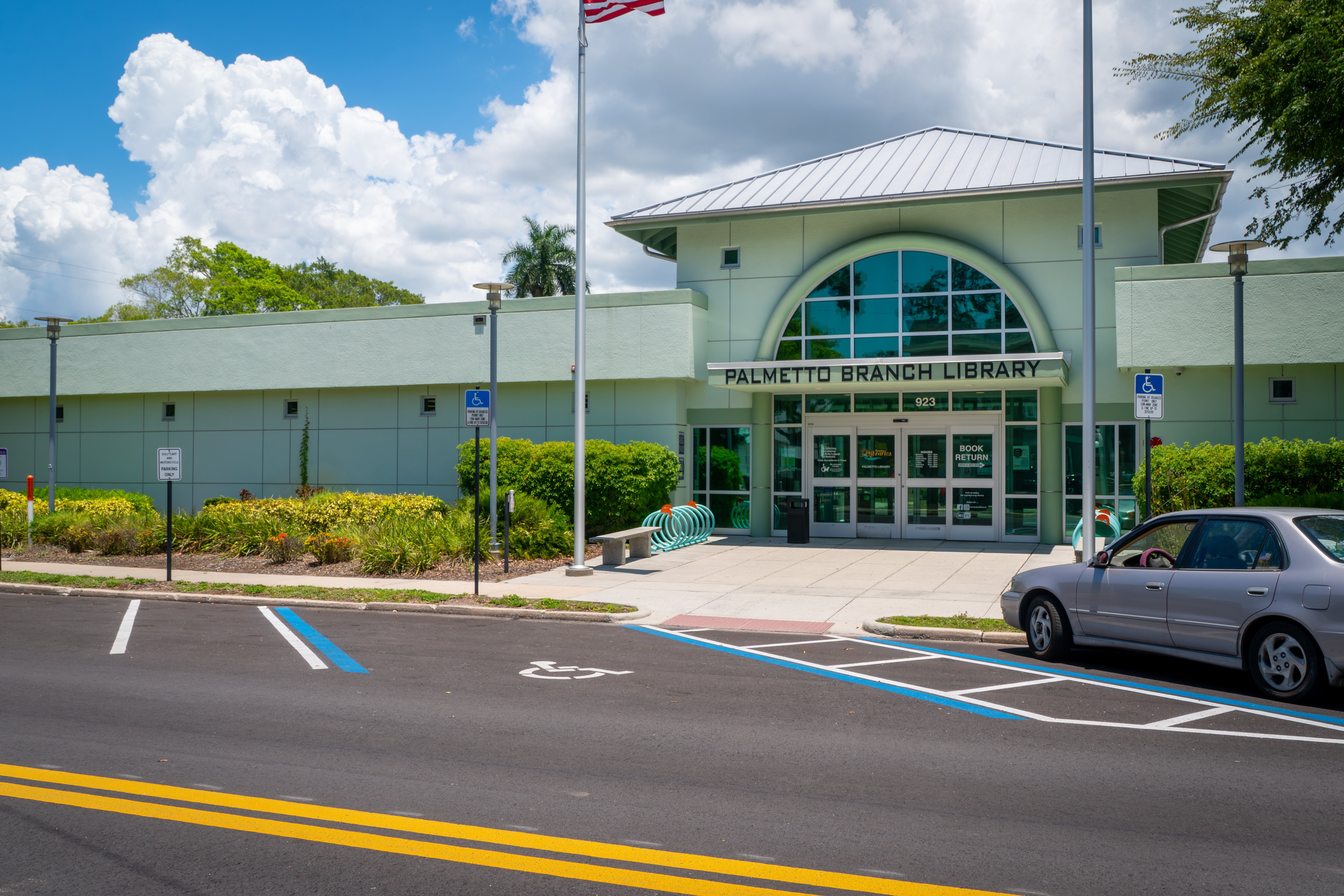 The Palmetto Branch Library, in downtown Palmetto, was built in 1969 and renovated in 2007 with eco-friendly features like low-energy lighting and stormwater retention. The library includes a makerspace, a pollinator garden, and a children’s area with a Spanish section, graphic novels, and a growing literacy collection. Serving a diverse community, the 12,700 sq. ft. library offers programs tailored to local needs and supports Palmetto’s agricultural heritage.