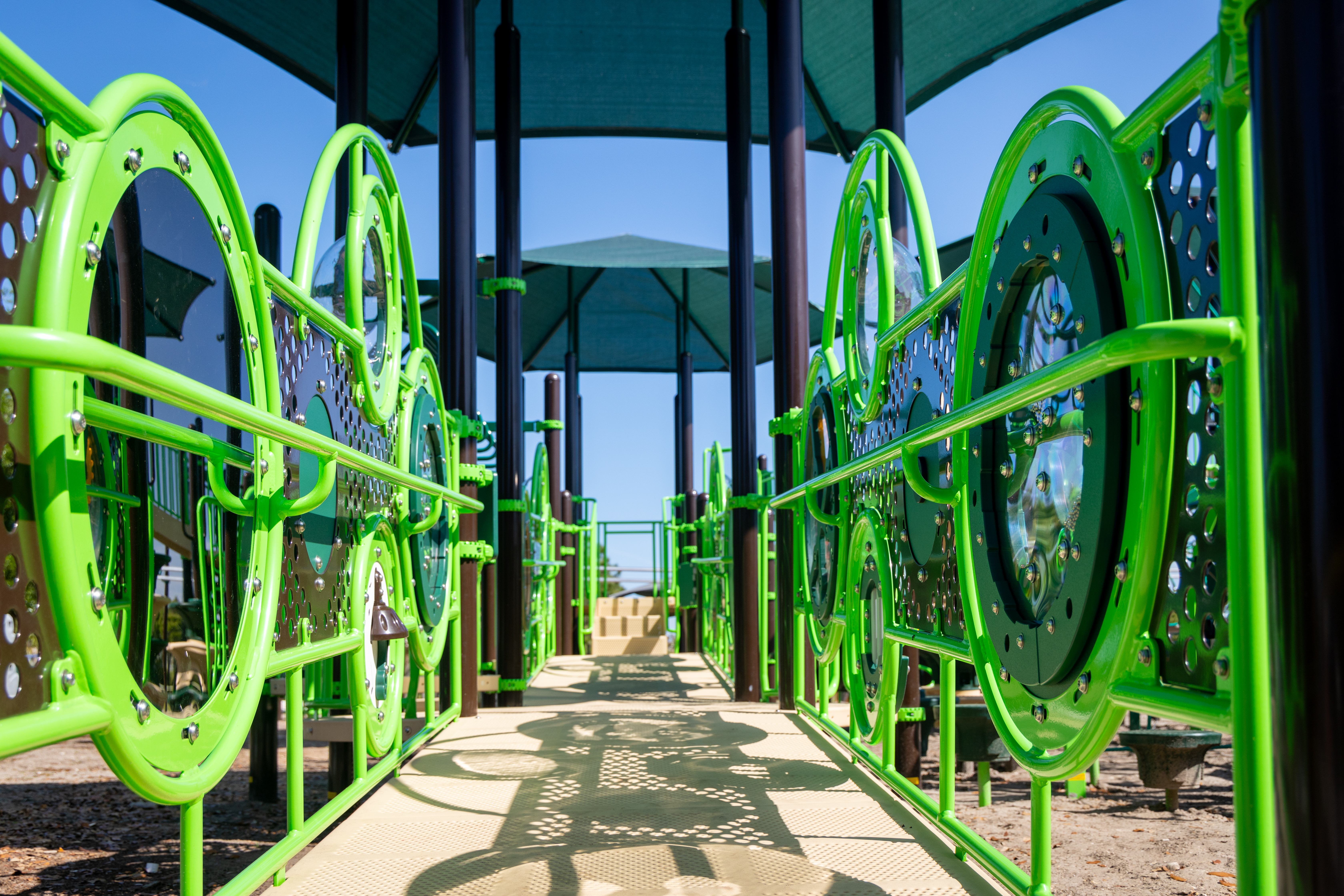 Playgrounds: Manatee County offers many playground locations with accessible features for all children to enjoy. There are accessible playground ramps at Lakewood Ranch Park, Palma Sola Park, Blackstone, and Tom Bennett Park features a fully accessible and fully inclusive structure featuring ramps to access most elements of the play structure, a wheelchair accessible merry-go-round, and ADA swing and Zipline.