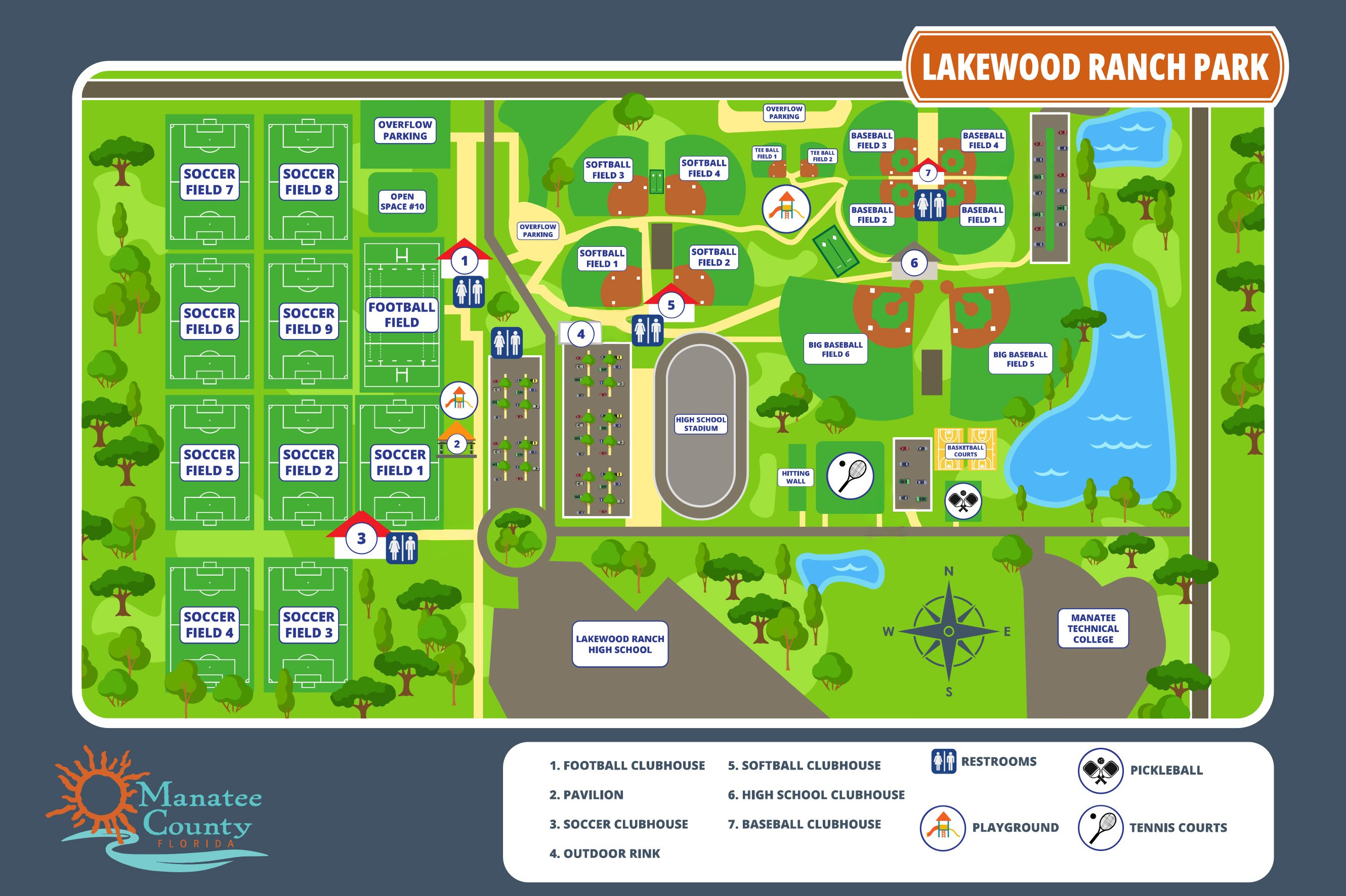 -2 T-Ball Fields -3 Little League Fields with Lights -1 Baseball Field with Lights -5 Soccer Fields with Lights -1 Football Field with Lights 1 Multi-purpose Field