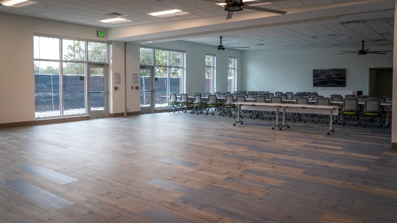 This small multi-purpose room is 617 sq. ft. and has counter space that runs the length of one wall and a 65" flat screen television on one wall.Rental Rates